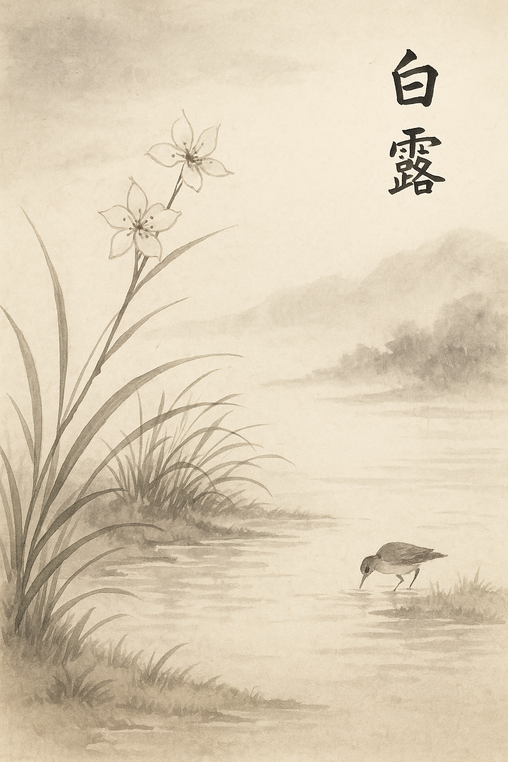 Chaque année autour du 7 ou 8 septembre, le souffle de l’automne se manifeste avec plus d’évidence : les matinées fraîchissent, la lumière se tamise, et la rosée du matin perle sur l’herbe comme un signe de retrait subtil. Le Jié Qì Báilù (白露), la Rosée Blanche, marque cette inflexion sensible du climat.